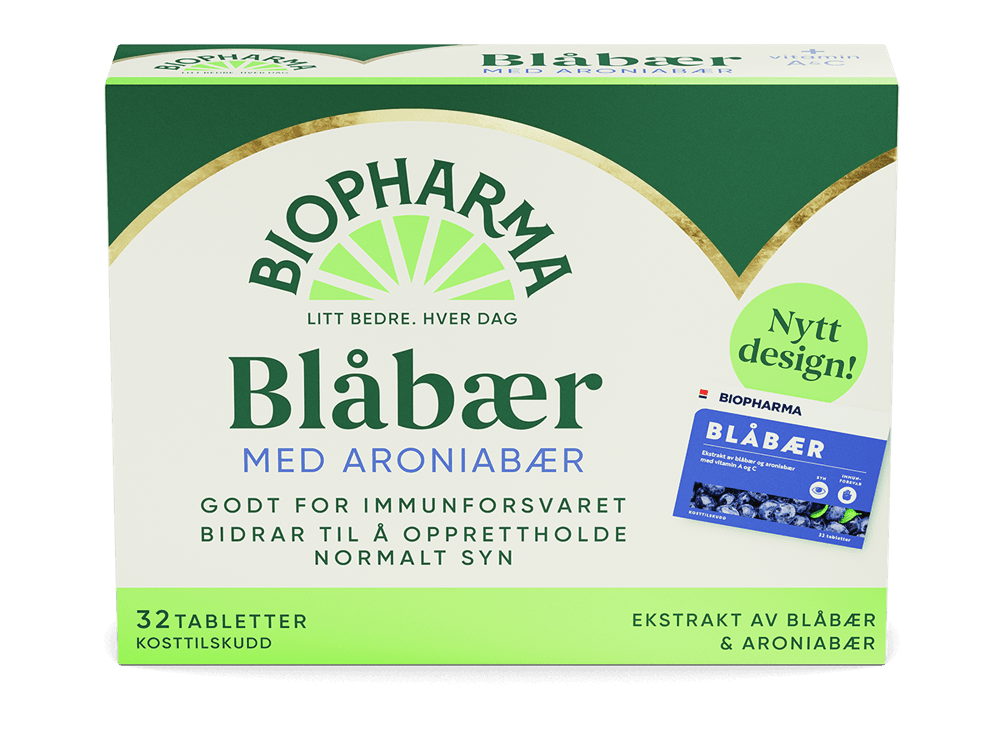 Biopharma Blåbær er et kosttilskudd med ekstrakt av blåbær og aroniabær samt vitamin A og C. Vitamin C bidrar til å beskytte cellene mot oksidativt stress og bidrar til å opprettholde immunsystemets normale funksjon. Vitamin A bidrar til å opprettholde normalt syn og er godt for immunsystemet.