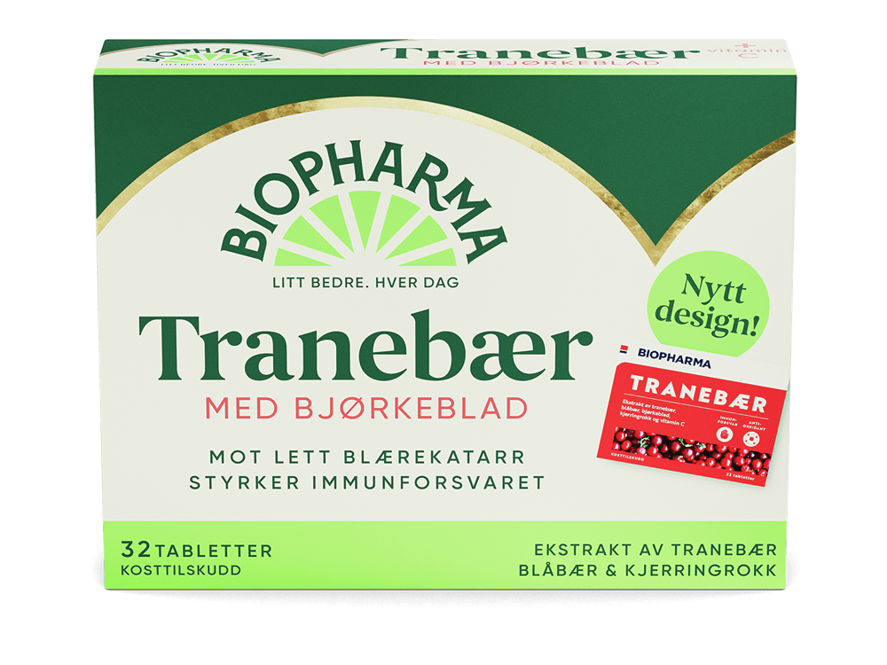 Biopharma Tranebær er et kosttilskudd med ekstrakt av tranebær, blåbær, bjørkeblad og kjerringrokk. Både bjørkeblad og kjerringrokk er